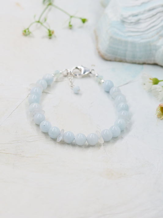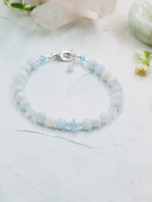 Aquamarine & Rainbow Moonstone Slender Bracelet
