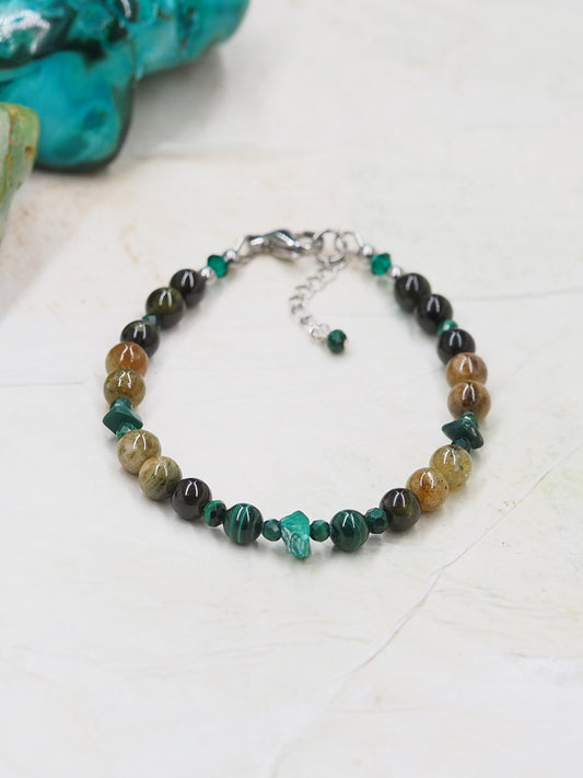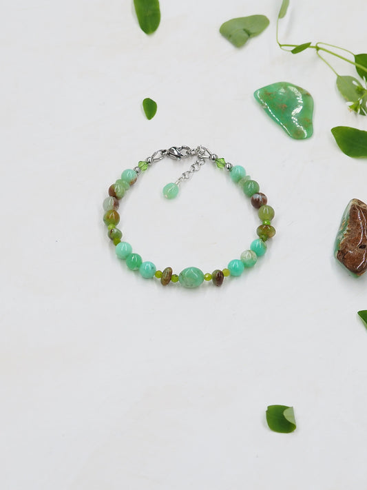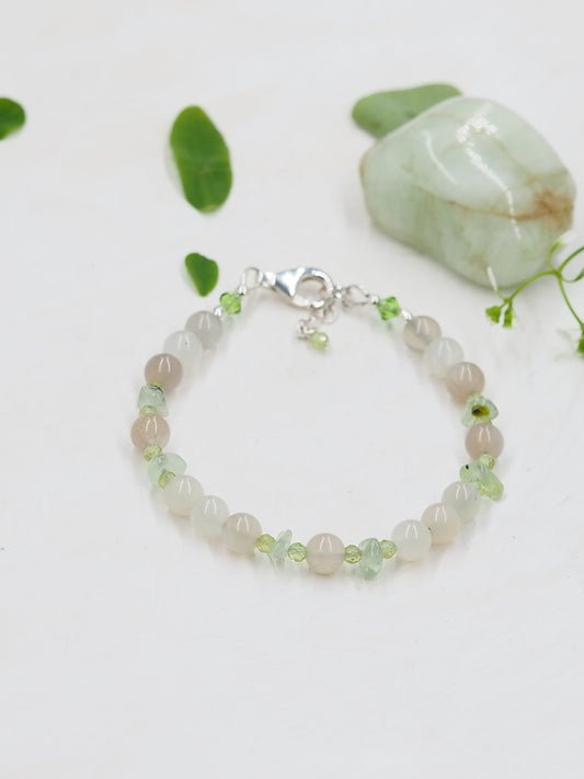 Moonstone, Prehnite & Peridot Slender Bracelet