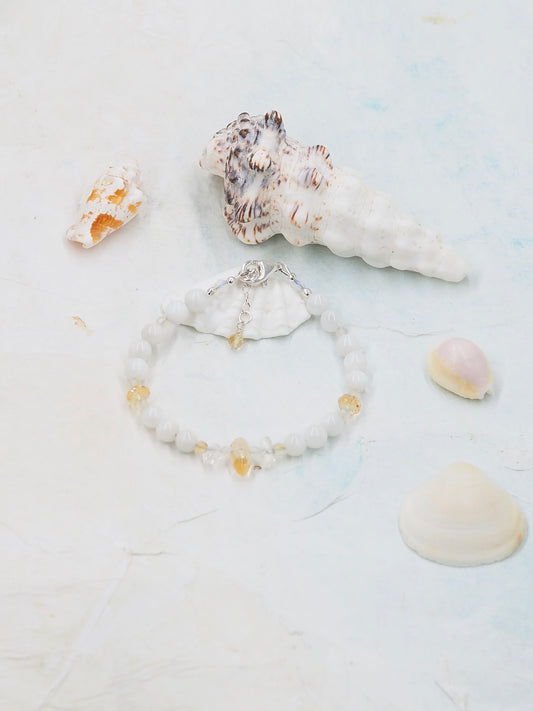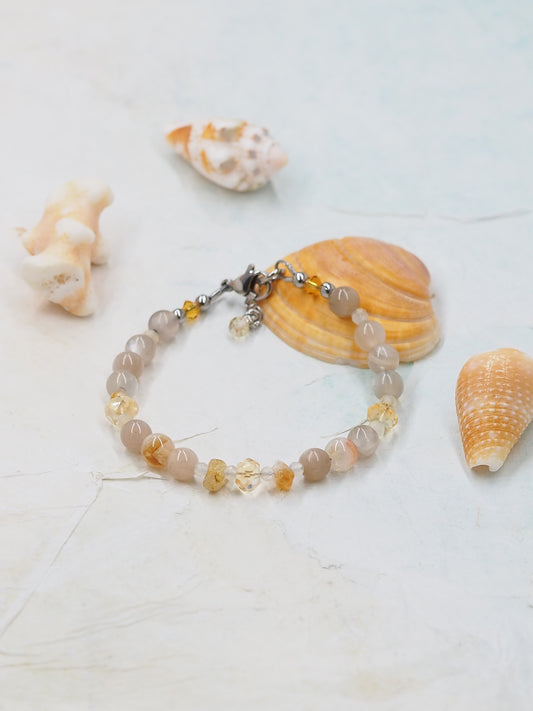 Citrine & White Rainbow Moonstone Slender Bracelet