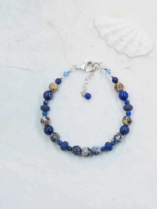 Blue Ocean Agate & Lapis Lazuli Slender Bracelet