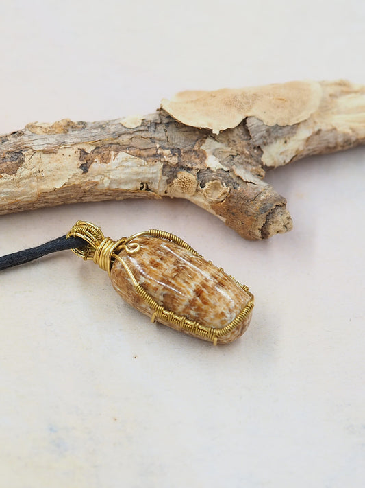 Aragonite & Brass Hand Wrapped Pendant