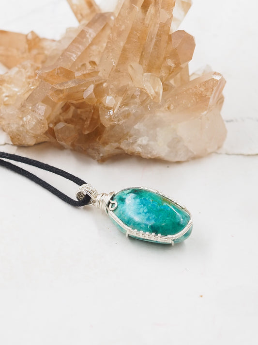 Chrysocolla and Sterling Silver Hand Wrapped Pendant