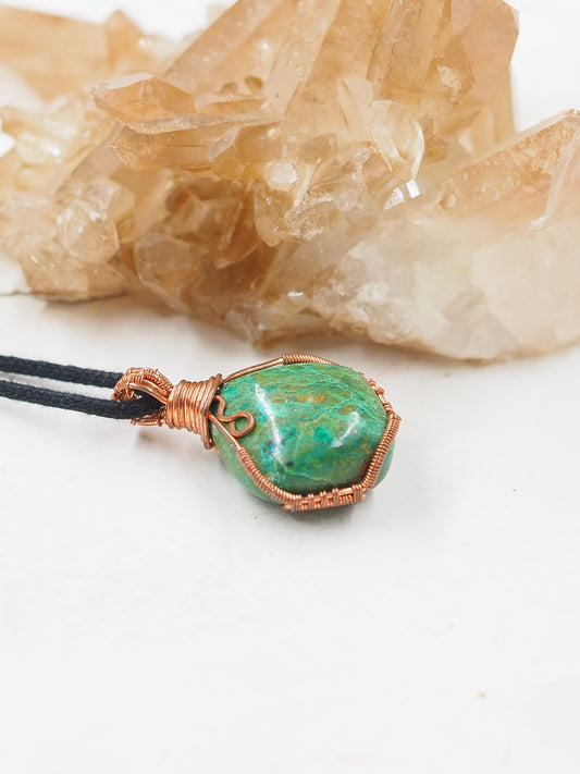 Chrysocolla and Copper Hand Wrapped Pendant