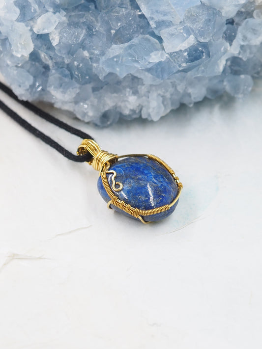 Lapis Lazuli & Brass Hand Wrapped Pendant