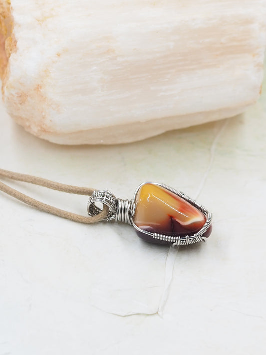 Australian Mookaite & Stainless Steel Hand Wrapped Pendant