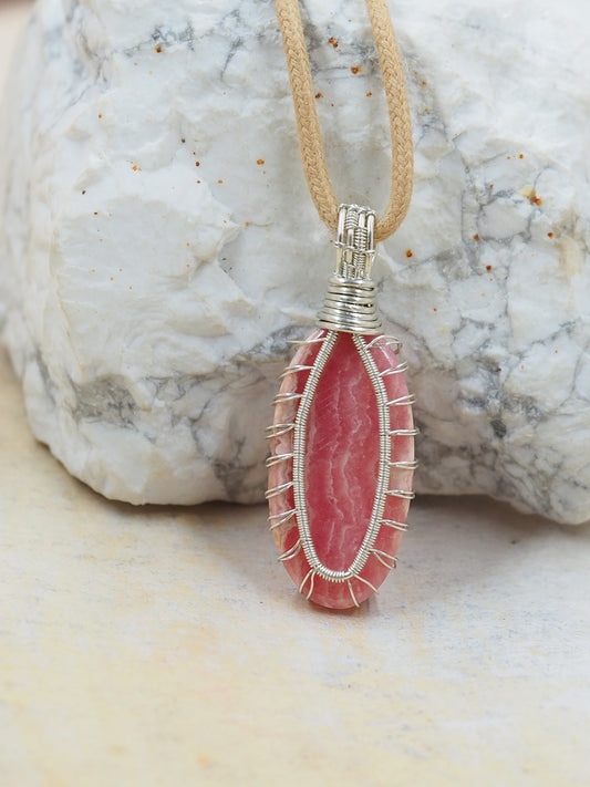 Hand Wrapped Rhodochrosite Pendant