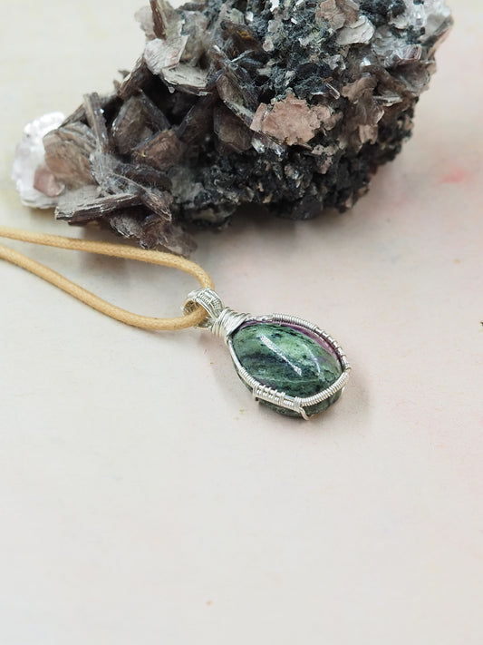 Ruby in Zoisite Pendant, Hand Wrapped with Sterling Silver